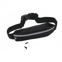 Běžecký pás SEE ME, odolný proti stříkající vodě: zvenku s otvorem pro sluchátka a odrazkou pro dobrou viditelnost v provozu, uvnitř se zipem, nastavitelný a elastický pás s boční přezkou – ideální pro jogging, chůzi a turistiku